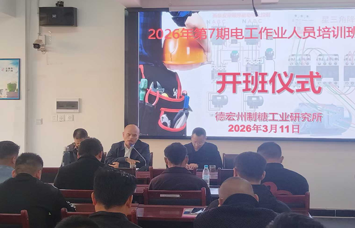 为全面提高我州电工作业复审人员的安全意识和防范风险的能力,减少安全事故的发生。2026年3月11日,由德宏州制糖工业研究所举办的2026年第7期电工特种作业人员复审培训班在芒市顺利开班。德宏州制糖工业研究所所长李启明、副所长闫信达、高级讲师杨成东老师出席开班仪。开班仪式由闫信达同志主持。