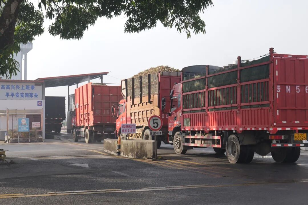 一辆辆满载甘蔗的车辆有序排队,依次过磅后精准卸蔗至输蔗机,这些原料顺着输送线源源不断送往压榨车间。车间内,生产线上的机器开足马力,工人们各司其职,确保每一道生产环节安全、高效运行。空气中弥漫着糖料蔗特有的醇厚甜香味。从原料进厂到初加工环节,各个流程衔接顺畅,尽显企业生产活力与丰收喜悦。据悉,本榨季陇川糖厂预估入榨甘蔗47万吨,生产白砂糖6万吨。