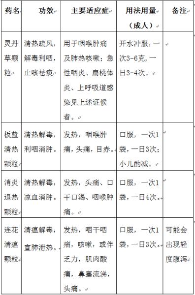 3、以其它症状(头痛、结膜炎、乏力)为主症,或无明显症状者,酌情选用桑菊银翘散、桑菊感冒片、小柴胡颗粒、藿香正气颗粒(或水、口服液、胶囊)等。