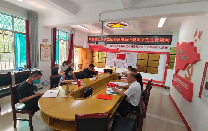 今年4月是第35个爱国卫生月。为全面贯彻党的二十大精神,进一步落实习近平总书记关于爱国卫生运动的重要指示精神,落实《国务院关于深入开展爱国卫生运动的意见》,推动各地在疫情防控新阶段更有针对性地开展爱国卫生运动,促进形成文明健康绿色环保生活方式,4月10下午,州制糖工业研究所开展“宜居靓家园、健康新生活”为主题的爱国卫生宣传会议。全所干部职工参加了会议。