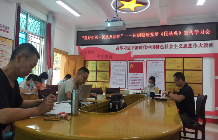 今年5月是全国第三个“民法典宣传月”,为认真贯彻落实习近平总书记“让民法典走到群众身边、走进群众心里”的重要指示精神,传承社会主义法治思想,进一步弘扬《民法典》精神,培养干部职工知法、懂法、守法、用法的良好品德,引导广大干部职工坚定不移地走中国特色社会主义法治道路。5月22日,州制糖研究所召开了“美好生活.民法典相伴”为主题的《民法典》宣传学习会。