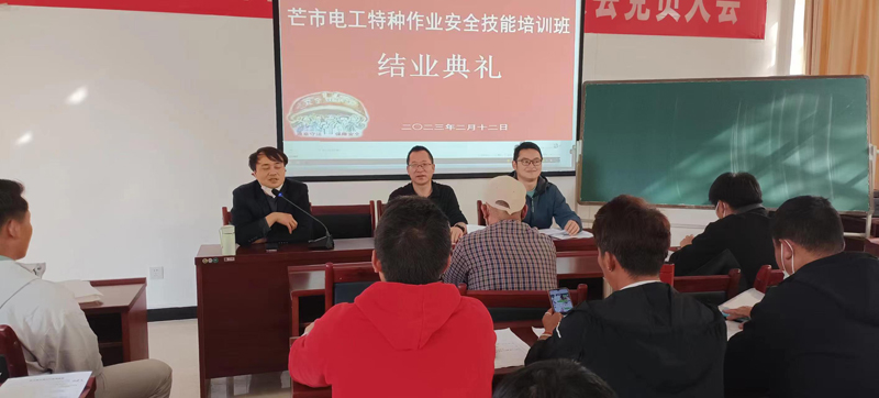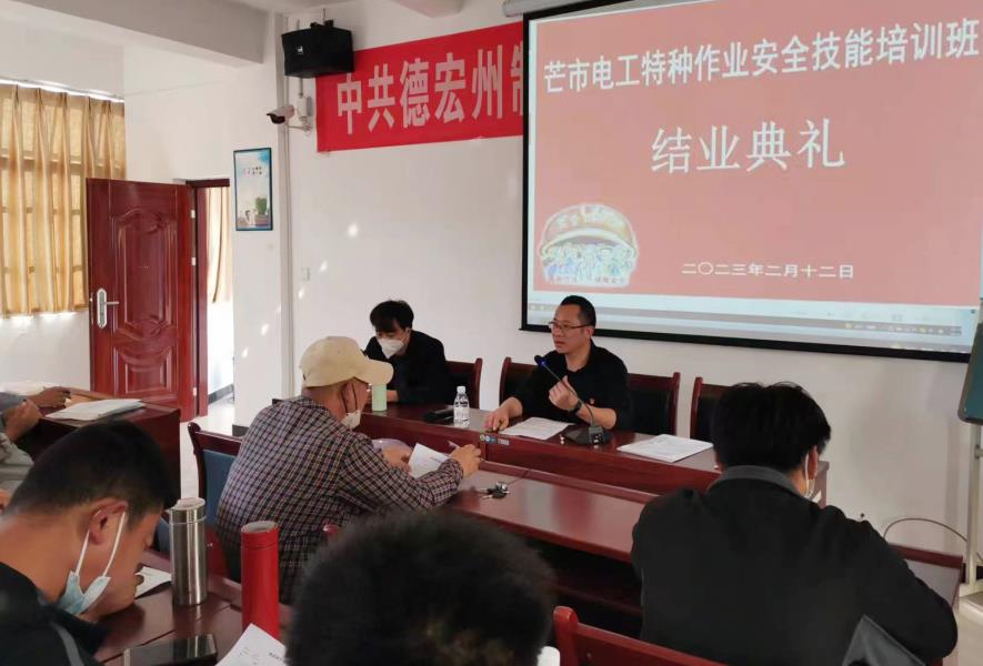 为进一步提升培训班学习成效,2023年2月12日,德宏州制糖工业研究所举行2023年芒市电工特种作业人员培训班结业典礼。结业典礼由德宏州制糖工业研究所副所长闫信达同志主持。
